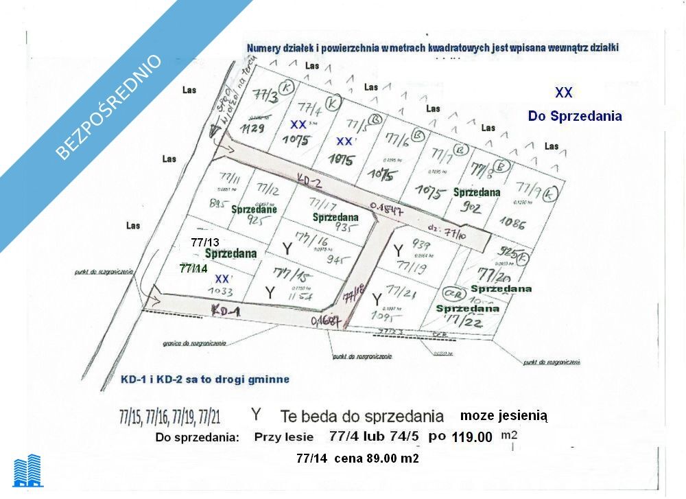 Najtansza działka 77/14 o powierzchni 1033m2 jest za 89.00 za m2